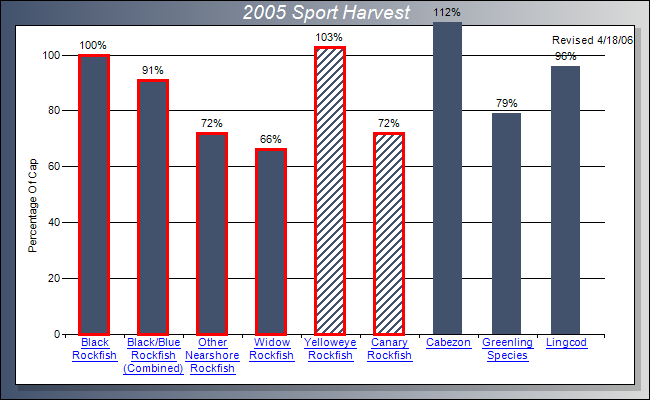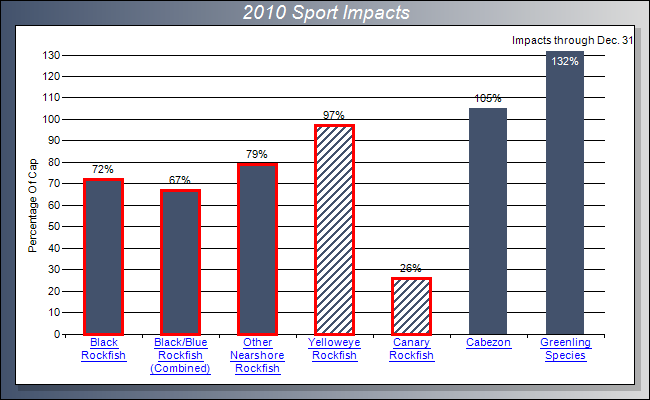 The Oregon recreational harvest guideline for yelloweye rockfish was reduced to 2.3 mt at the June 2010 Council meeting to comply with a court order to reduce total yelloweye impacts, coastwide, from 17 mt to 14 mt. The updated Federal Register can be found at: